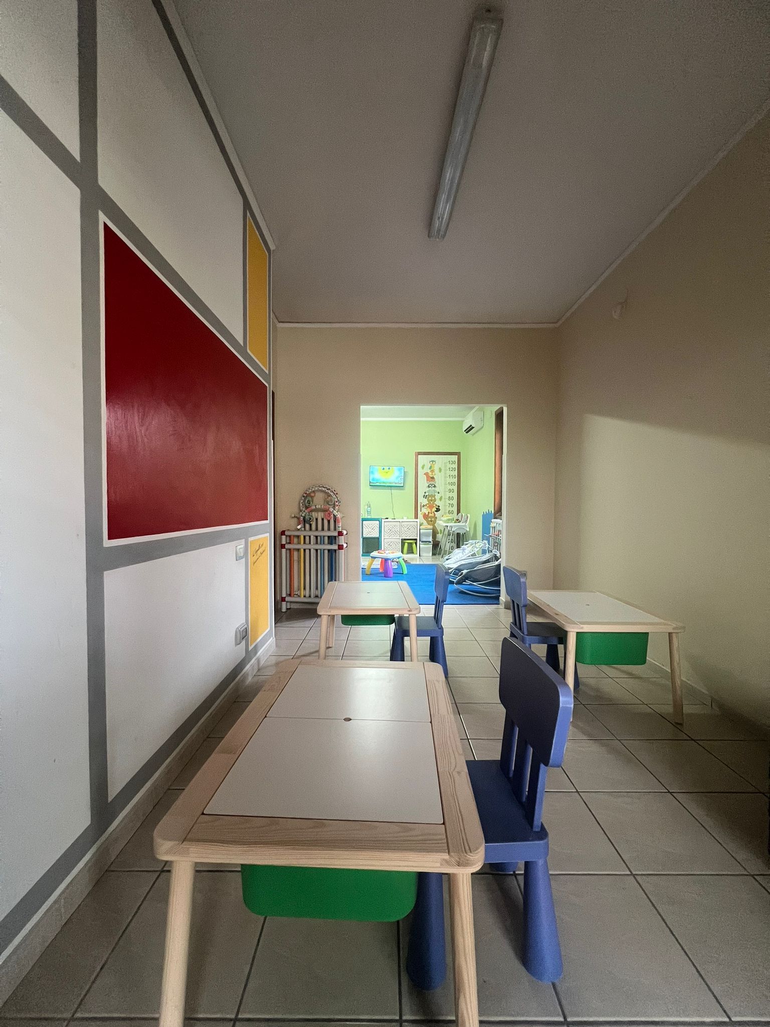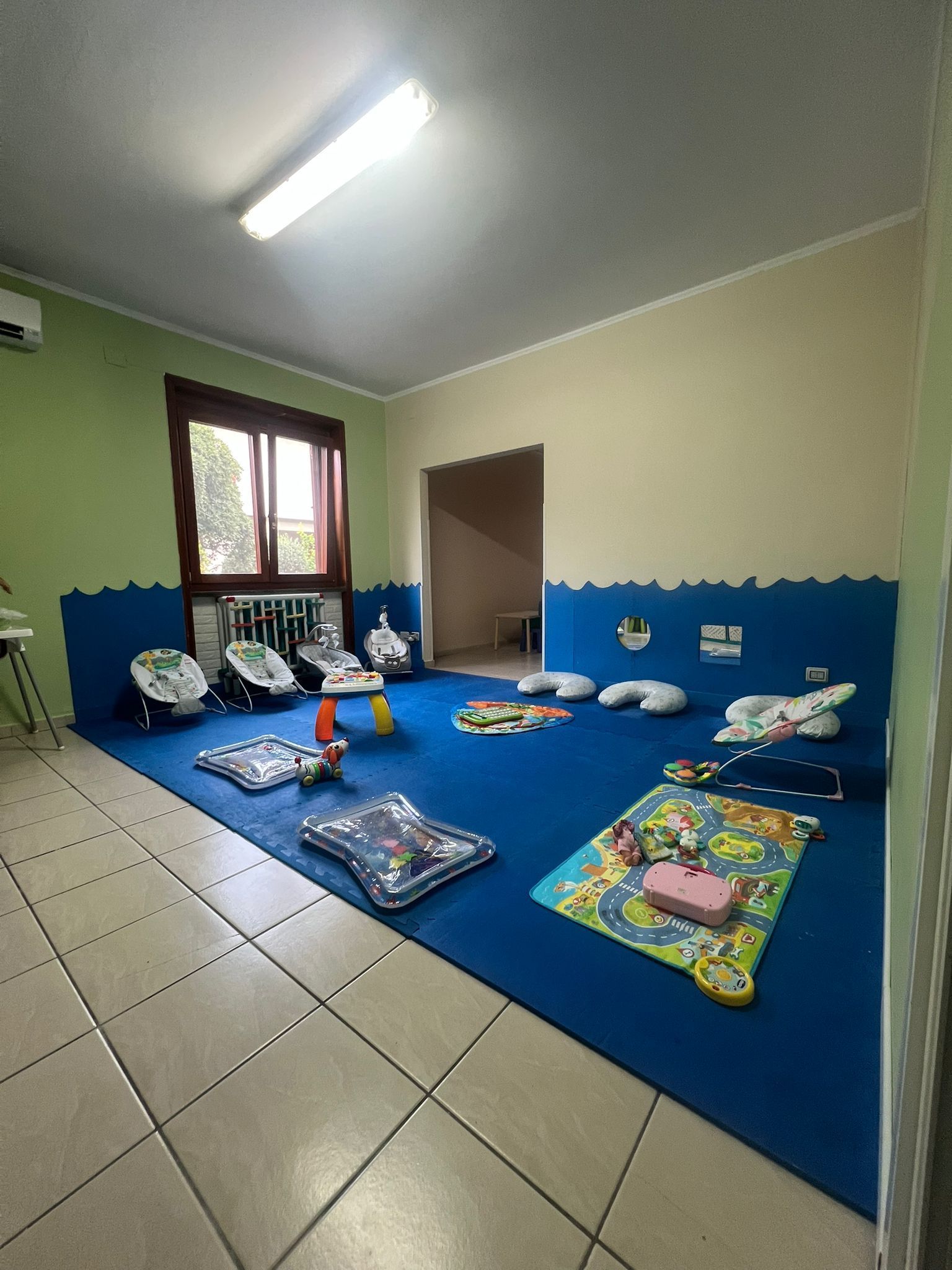 La struttura, ampia e luminosa, si sviluppa su due piani per circa 300 mq. Al piano terra si trovano la sala mensa, il dormitorio dei lattanti, il nido e il fasciatoio, mentre al primo piano ci sono le aule didattiche, il salone per i giochi e il dormitorio dei più grandi. Ogni attività proposta è studiata per favorire lo sviluppo psico-fisico del bambino, stimolarne la curiosità e facilitare la socializzazione, in piena collaborazione con le famiglie. Lo Scarabocchio è un ambiente dove il bambino può sperimentare, esprimersi e crescere rispettando i propri tempi.